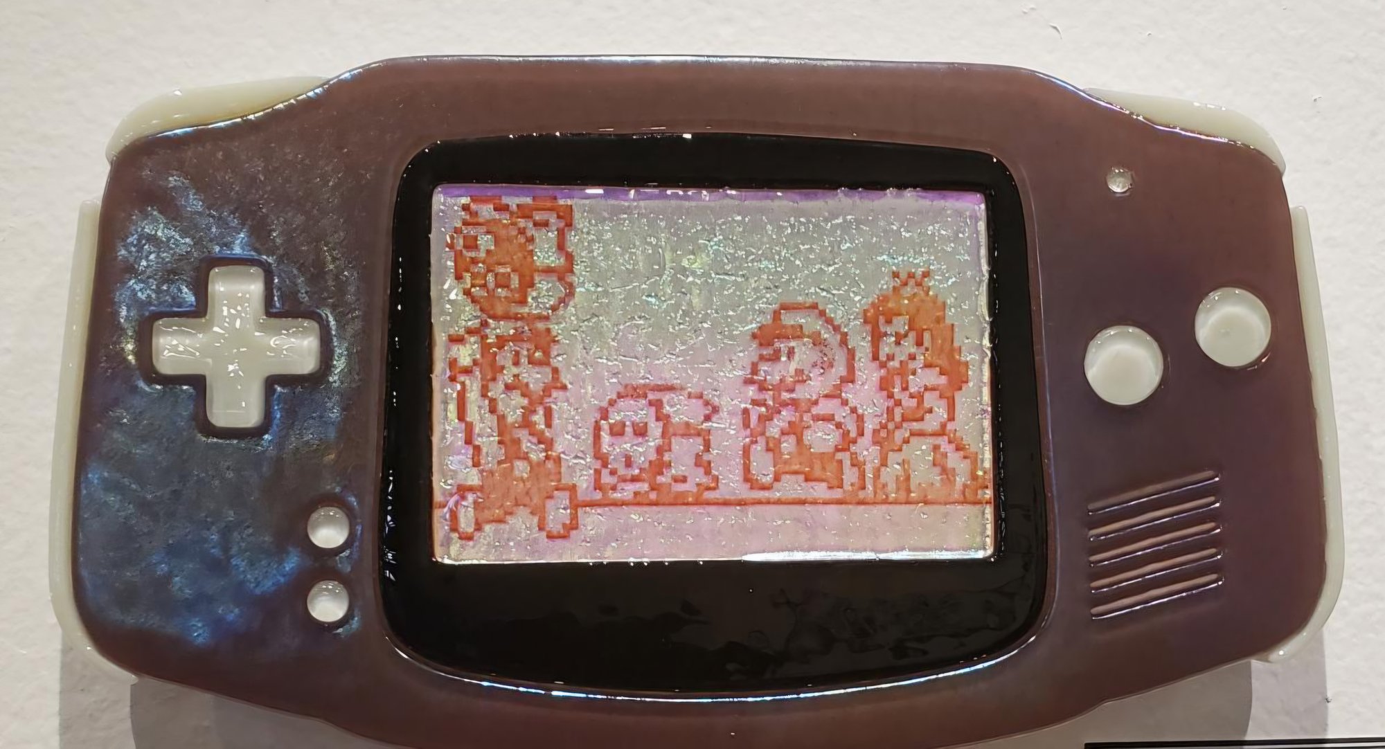A GBA piece made of fused glass. Choose from a selection of colors and hanging options for this screen variant!