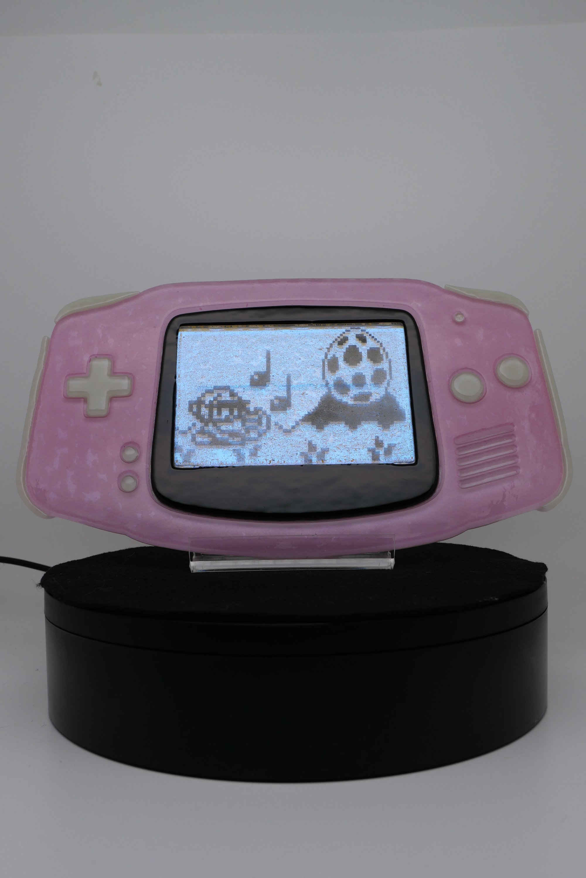 A GBA piece made of fused glass. Choose from a selection of colors and hanging options for this screen variant!